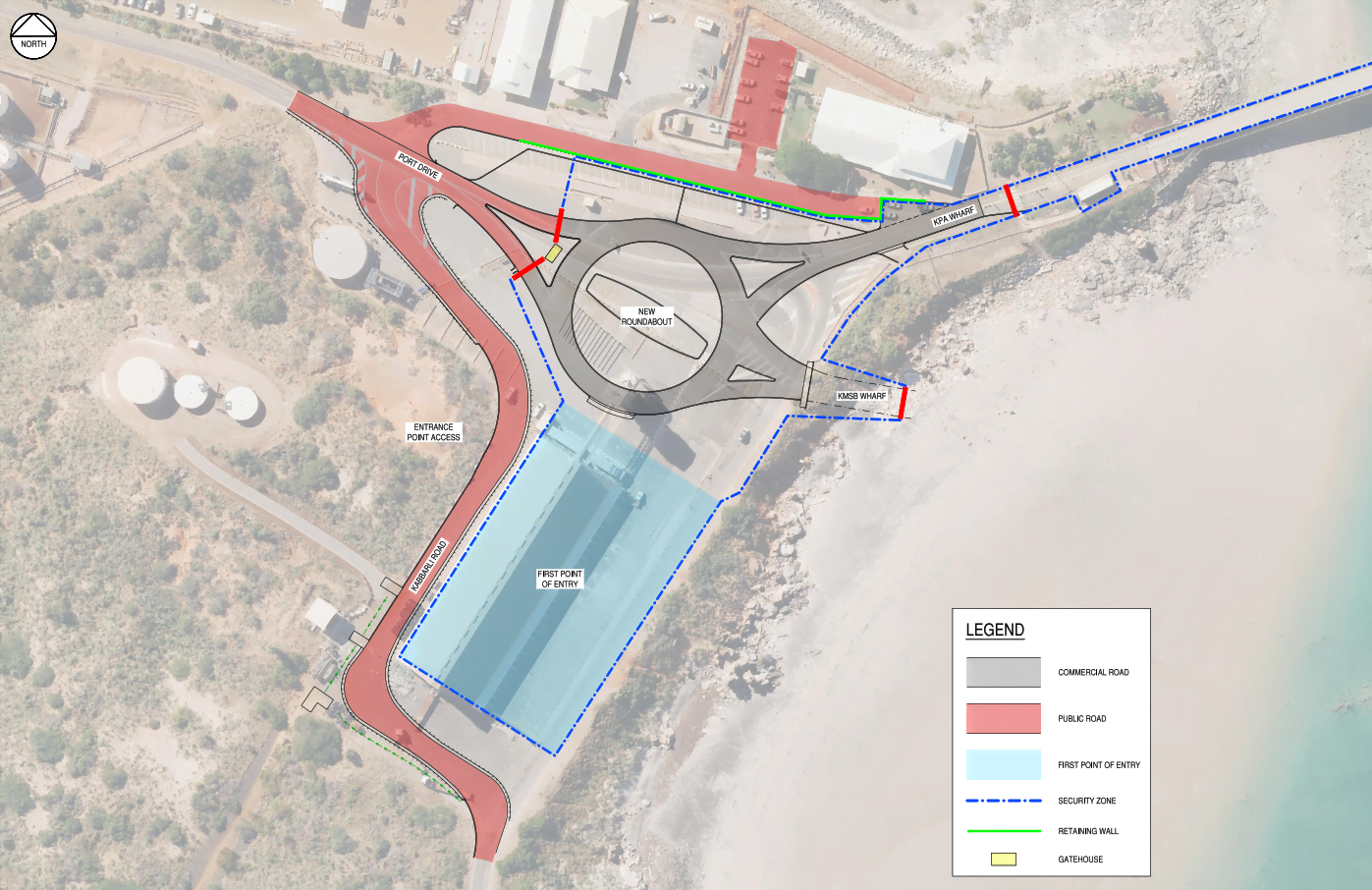 The relocation of the Security Gatehouse and fencing marking the new Maritime Security Zone will be one of the last works to be completed, in early 2026.